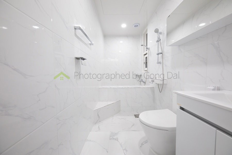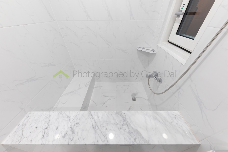 조적 욕조는 같은 타일로 일치감을 주었는데요.